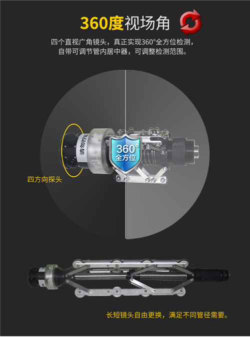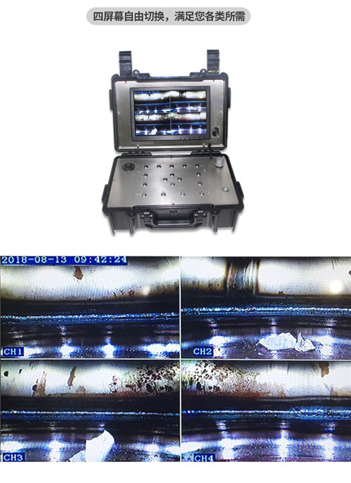 GT-CX4工業(yè)容器內(nèi)窺鏡可實(shí)現(xiàn)一屏四用的檢測效果,分屏檢測更加精細(xì)、全面,管道/容器內(nèi)部360°檢測無死角。自帶可調(diào)節(jié)LED光源照明,搭載居中器,確保在檢測過程中鏡頭處于管道或容器的居中位置,實(shí)用又方便。四屏幕自由切換,長短鏡頭可自主更換,滿足不同長度/高度/直徑的檢測需求。通過智能控制系統(tǒng)實(shí)時(shí)傳輸檢測畫面,拍照、錄像一體化操作更方便。