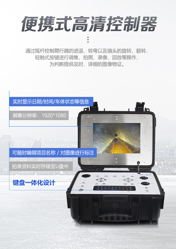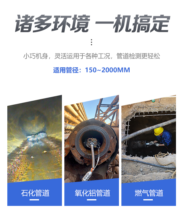 簡介——GTR120系列管道爬行機器人由爬行器、放線車和控制系統三部分組成。采用國際先進技術,實時獲取管道內部圖像信息,準確了解