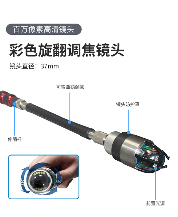 GTTC47R手持多功能探測儀能夠使救援人員看到被埋在廢墟下的被困者,并通過安裝有話筒的高清彩色攝像頭,與受困者進(jìn)行清晰的視頻和通話功能。適用于在地震、轟炸以及建筑物內(nèi)爆炸等之后的救援工作。在救援現(xiàn)場,當(dāng)遇到復(fù)雜的現(xiàn)場環(huán)境時(shí),例如水陸混雜、不規(guī)則縫隙、日照強(qiáng)光等,一般的直柄式的探桿視頻設(shè)備無法滿足現(xiàn)場,集視頻搜尋與雙向通話功能于一身的手持多功能探測儀,能夠迅速對受害者展開搜索與定位。產(chǎn)品采用5.1寸高清液晶顯示屏,拍照錄像一體化設(shè)計(jì),為制定詳細(xì)的救援方案提供直接的依據(jù)。同時(shí),可折疊遮陽板有效解決了顯示器屏幕反光的問題;還可選配紅外攝像頭,即使在無光亮的環(huán)境中,也可以清晰觀察到黑暗中的情況!高清成像,全程動(dòng)態(tài)錄像;采用輕型伸縮桿,輕便易操作。最長伸縮總長可達(dá)3米,最長調(diào)節(jié)長度可達(dá)1.2米;伸縮桿前端設(shè)計(jì)有20cm長的鵝頸管,當(dāng)現(xiàn)場遇到彎曲探道時(shí),一般的直柄式的探桿視頻設(shè)備觀察易受阻,可彎曲鵝頸管憑借其超強(qiáng)的韌性,能夠在不規(guī)則的縫隙中,高效率檢查。