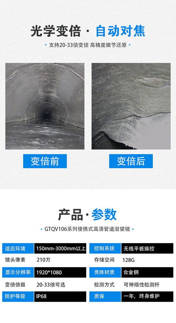 GTQV106高清管道潛望鏡 快速定位缺陷 紅外激光測距 無限平板操控系統(tǒng)